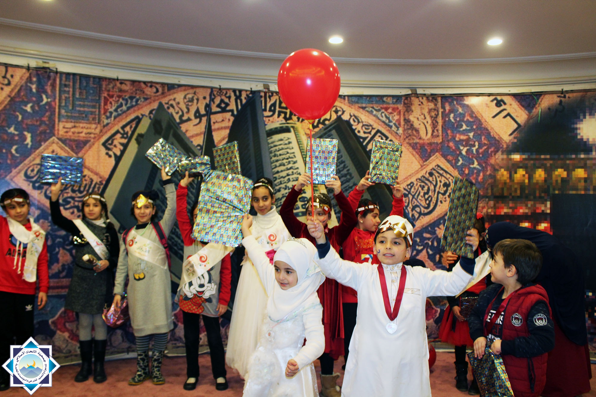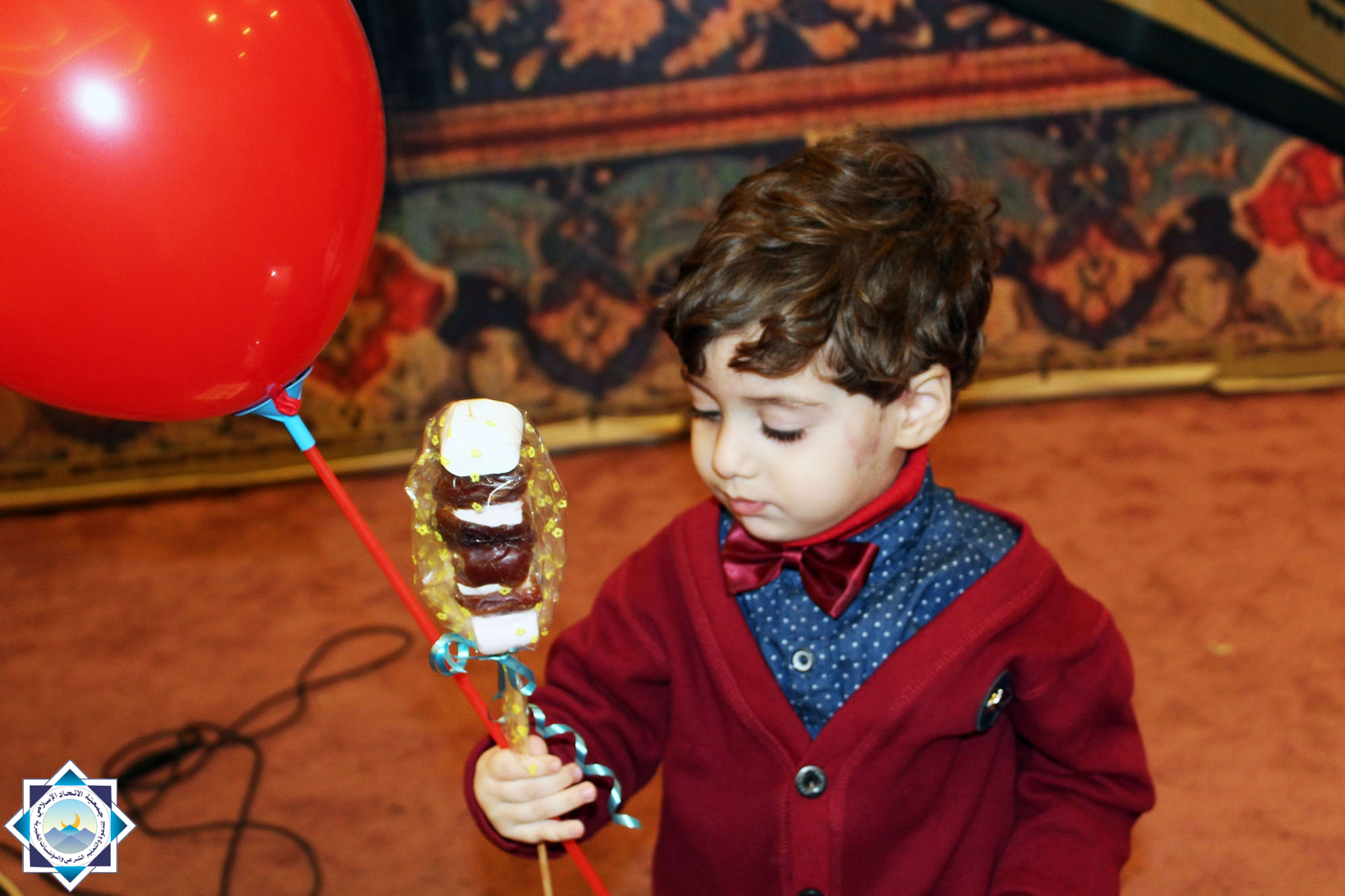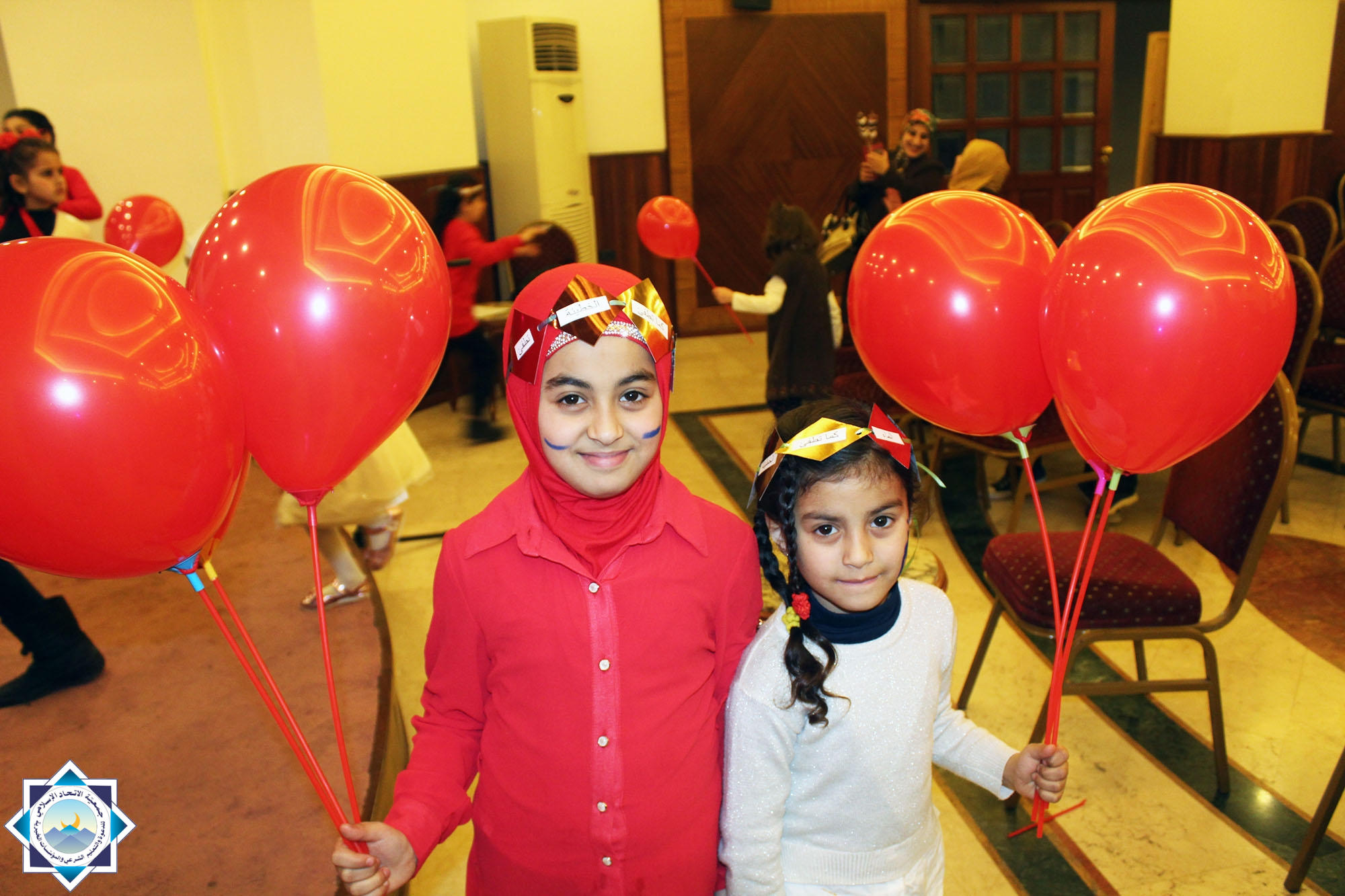 – توزيع البالونات الحمراء وقصص ومجلات على الأطفال.