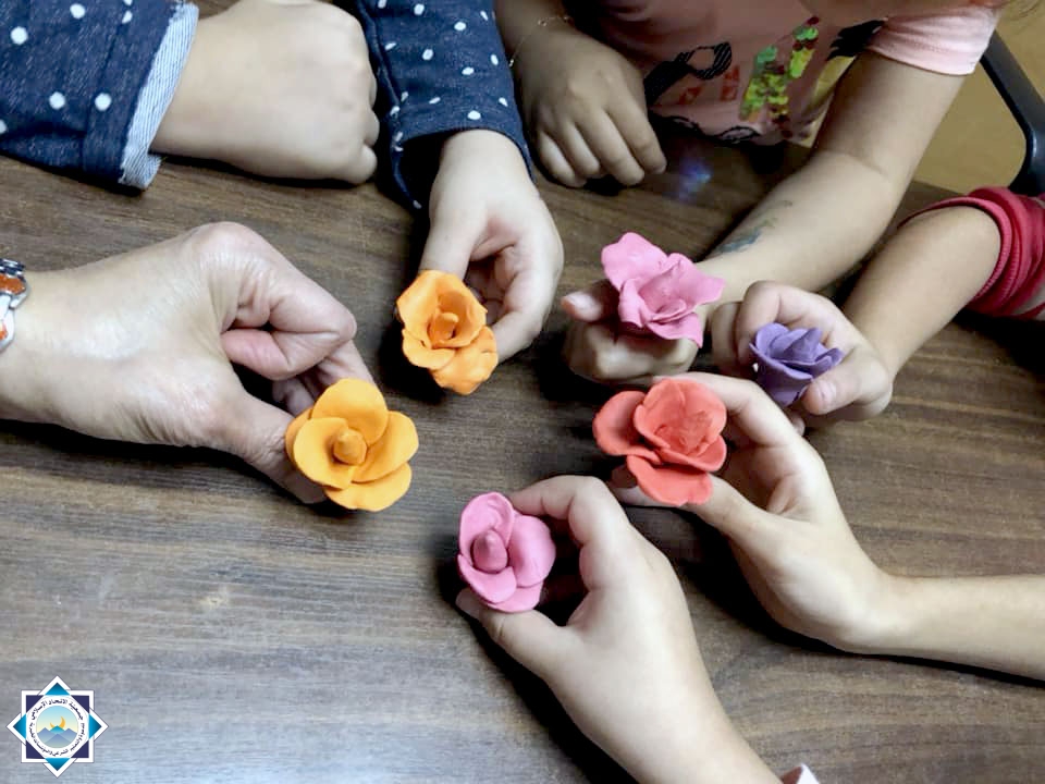 وفي لقائهنّ الأول تعلمت الناشئات الخطوة الأولى مع الصوف والصنارة، كما تعرفن على فقرة الإنشاد وحاوَلْنَ بدورهنّ تجربة أصواتهنّ، من ثم قمْنَ بتشكيل وردات من المعجون..
