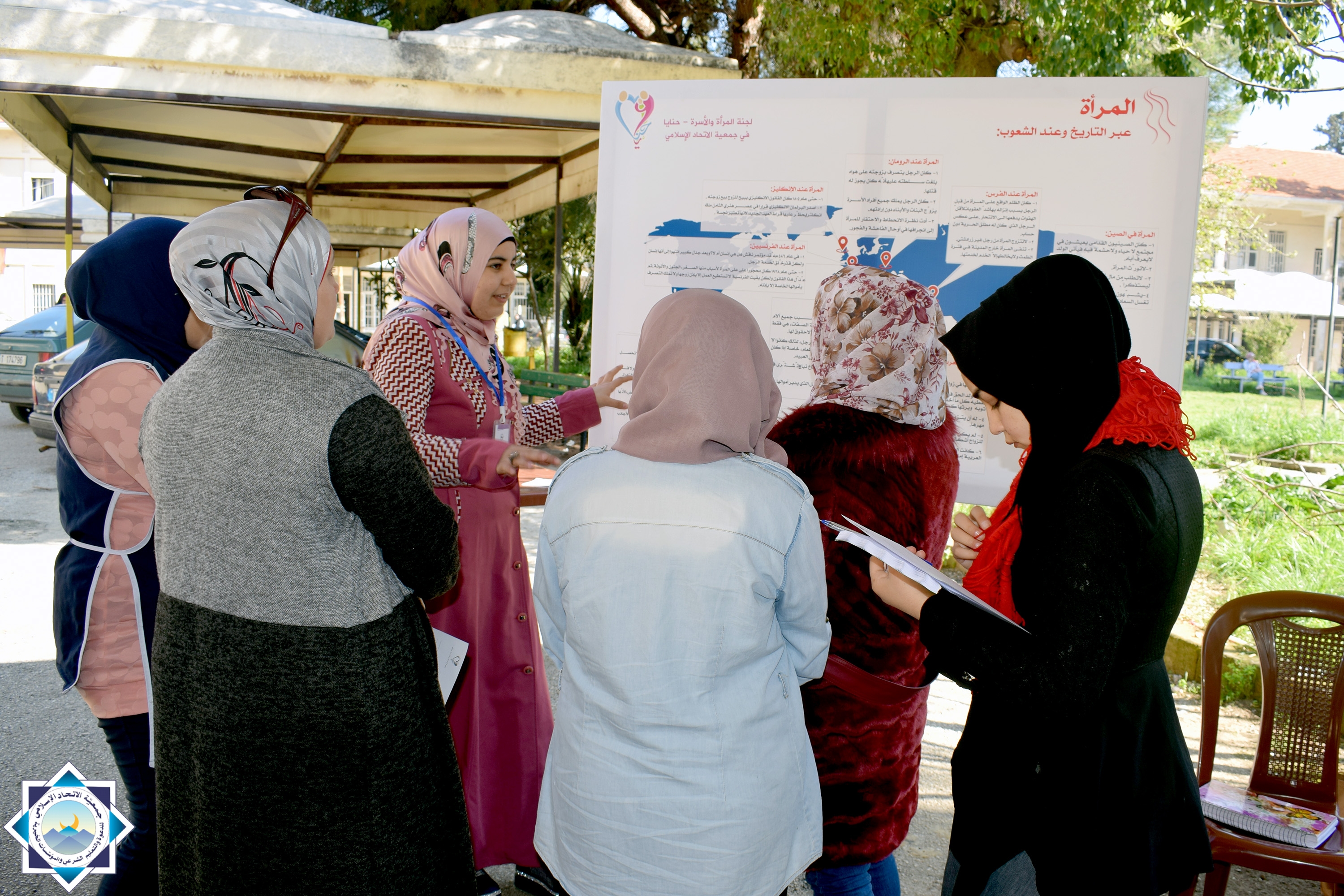 تناول المعرض أهم القضايا التي تواجه المرأة في واقعنا، منها: الحجاب، الزواج المدني، الميراث، والقوامة. بإضافة لعرض تاريخي لواقع المرأة عبر تاريخ الأمم.