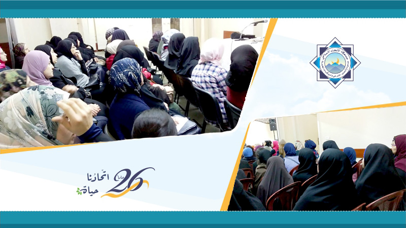 ضمن سلسلة لقاءات التزكية استعداداً لاستقبال شهر رمضان الكريم، نظّم القسم النسائي في جمعية الاتحاد الإسلامي محاضرة بعنوان: “رمضان على الأبواب فهل تهيأت له؟” ألقتها الحاجة الفاضلة زينة حربا يوم الجمعة 14 شعبان 1440هـ = 19 نيسان 2019م في مركز الجمعية في طرابلس.
