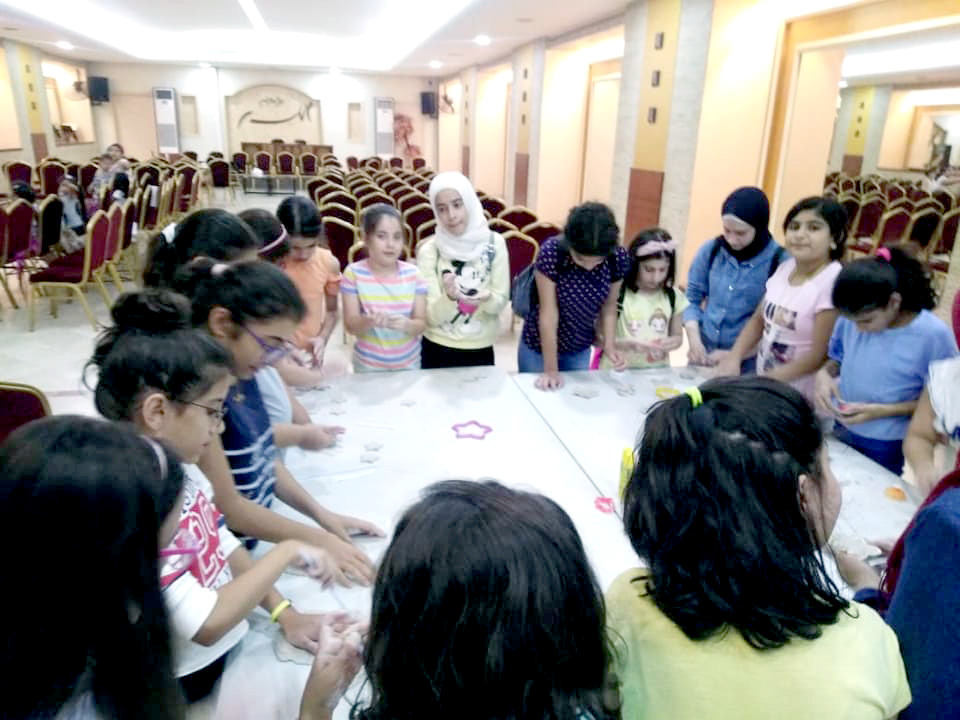 وفي نادي الطبخ قُمن بتزيين الكيك بالشوكولا والمارشميلو اللذيذ. كما صنعن وجه المهرج والأشكال من المعجون في نادي الفنون.