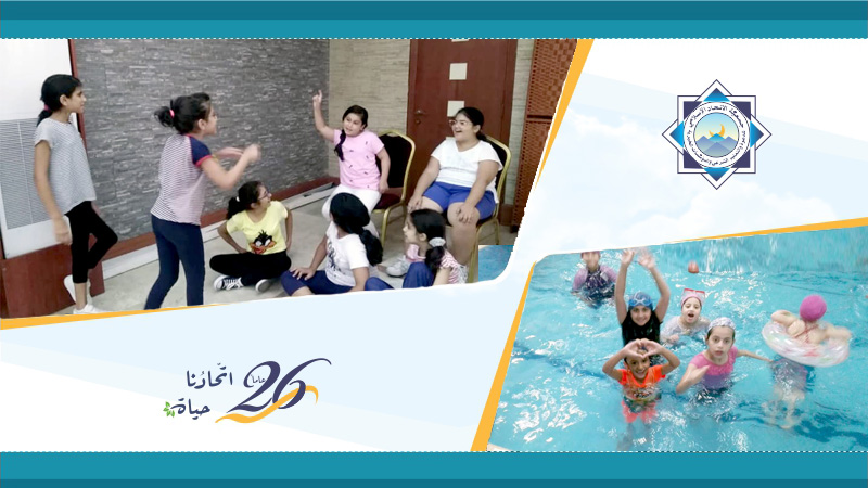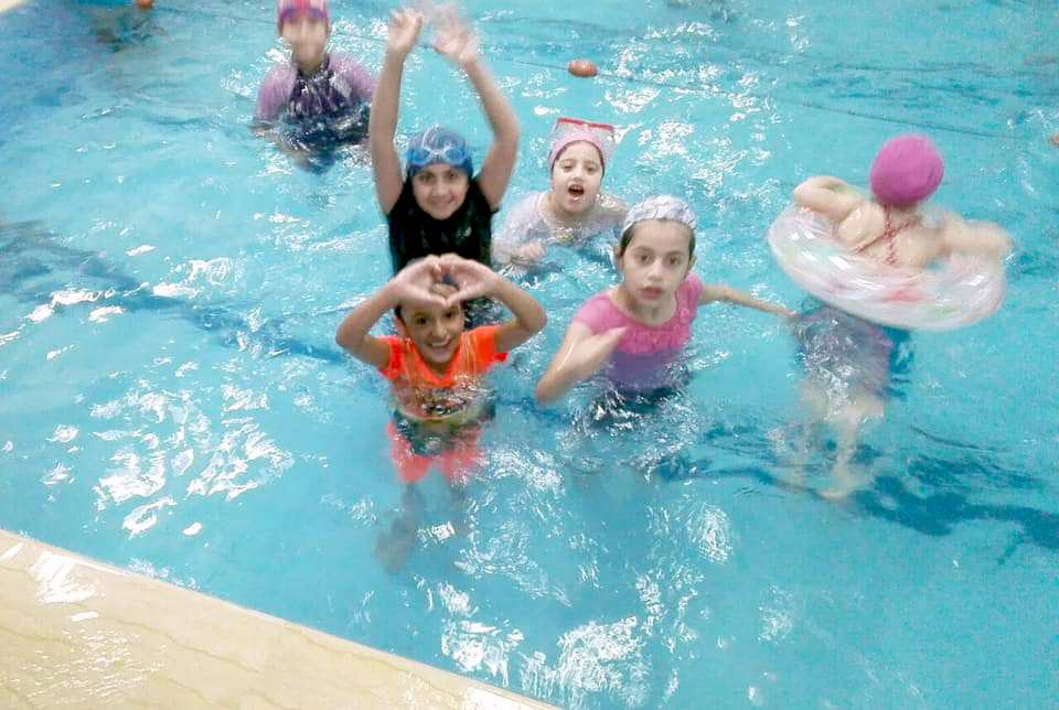 وفي نادي السباحة تدربن عبر اتباع خطوات محددة وجديدة مع المدربة.