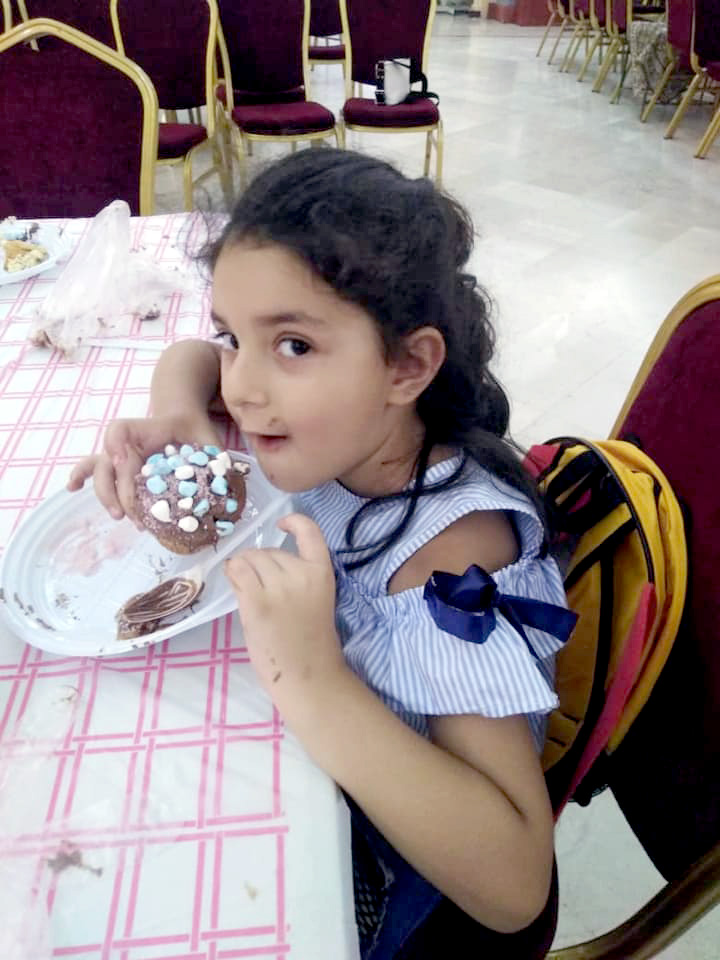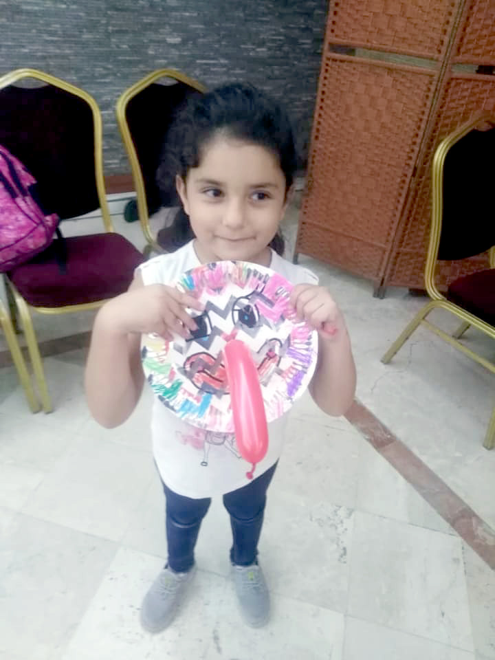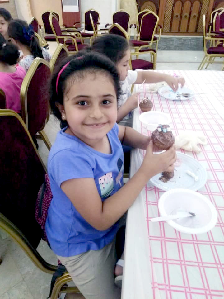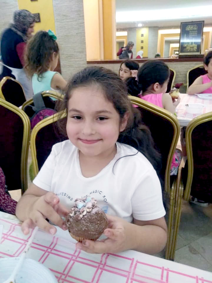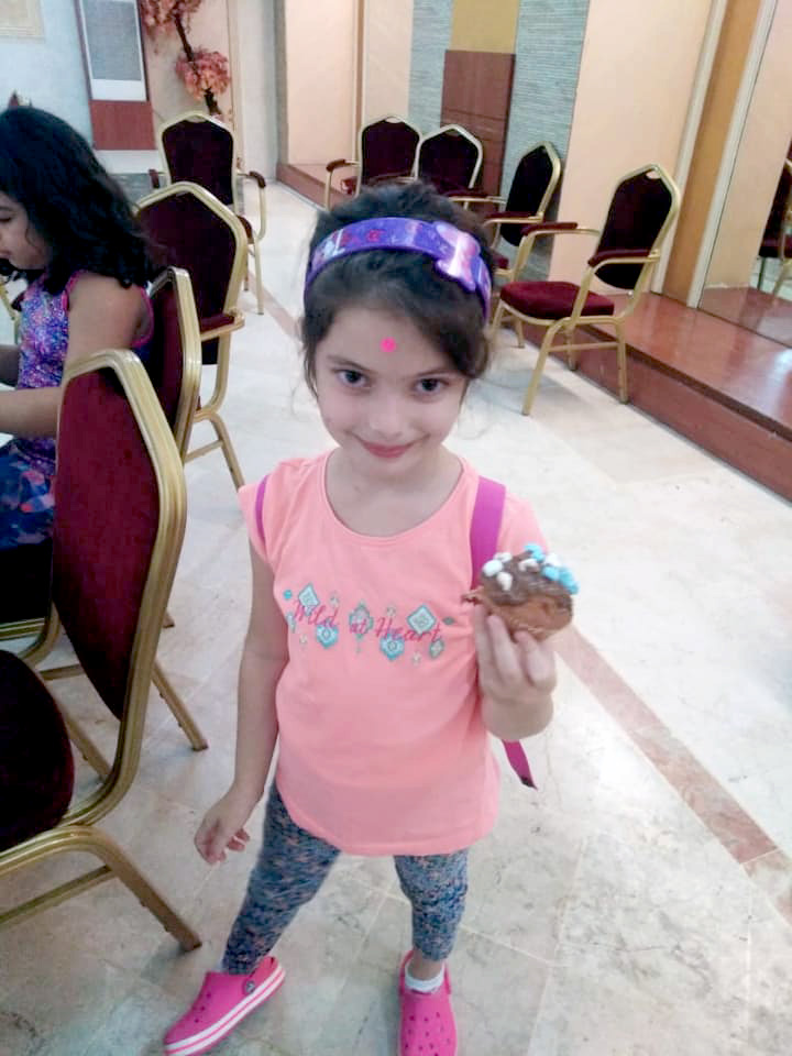 وفي نادي الطبخ قُمن بتزيين الكيك بالشوكولا والمارشميلو اللذيذ. كما صنعن وجه المهرج والأشكال من المعجون في نادي الفنون.