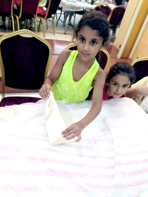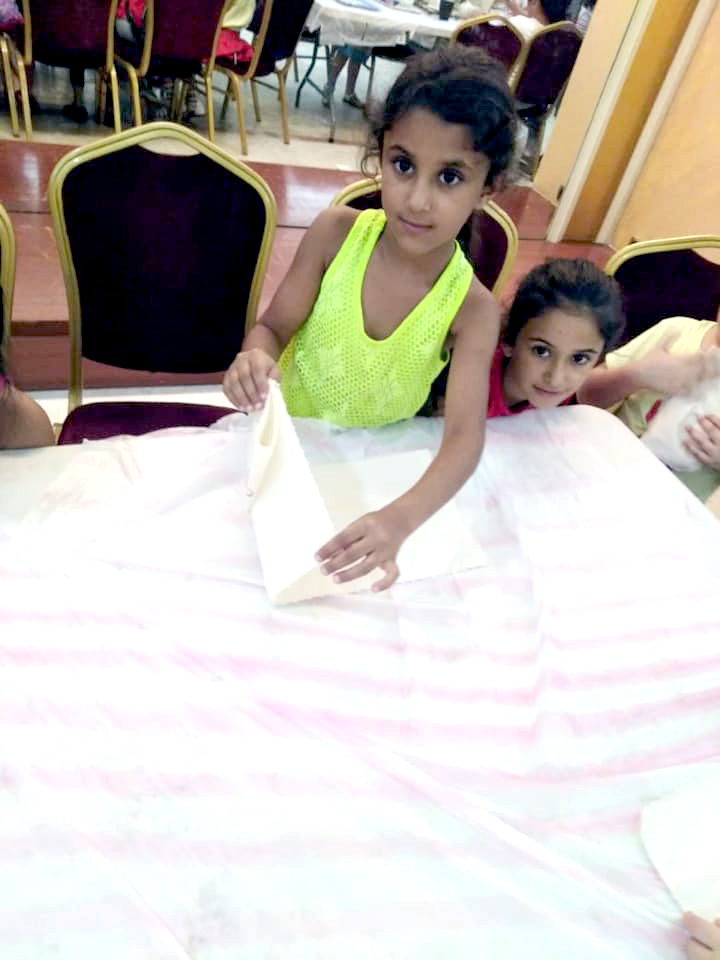 وفي النشاط اليدوي استخدمت الفتيات الطحين والبالونات وملأن القناني بالأوان الجميلة.