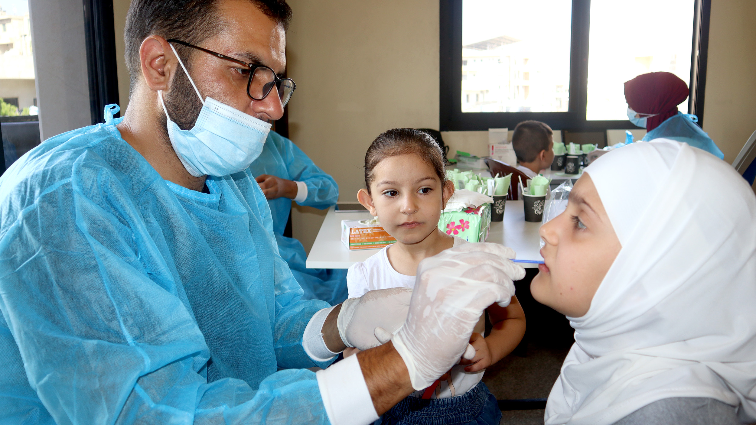 - – تقديم فرشاة ومعجون أسنان لكل طفل.
