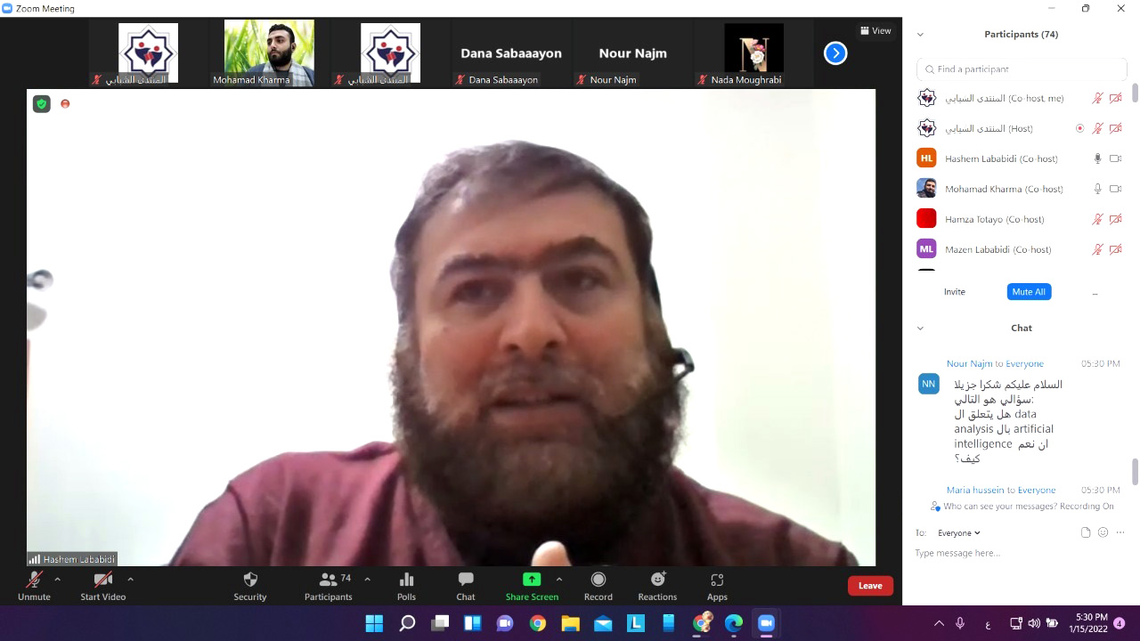 وذلك مساء يومَيْ السبت والأحد ١٢ و١٣ جمادى الآخرة ١٤٤٣ = ١٥ و١٦ كانون الثاني ٢٠٢٢ عبر تطبيق Zoom.