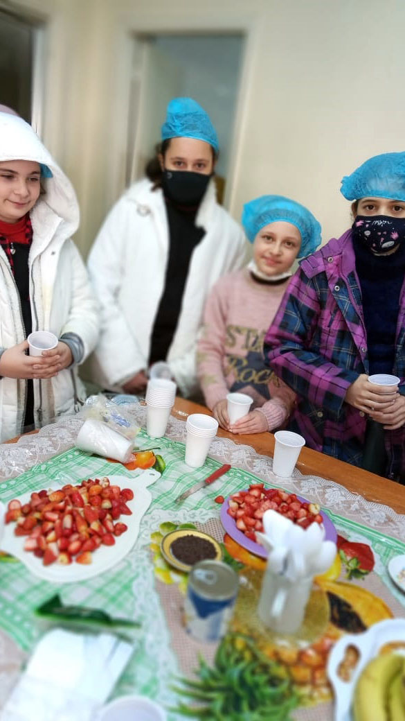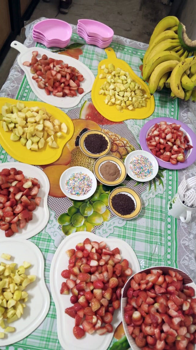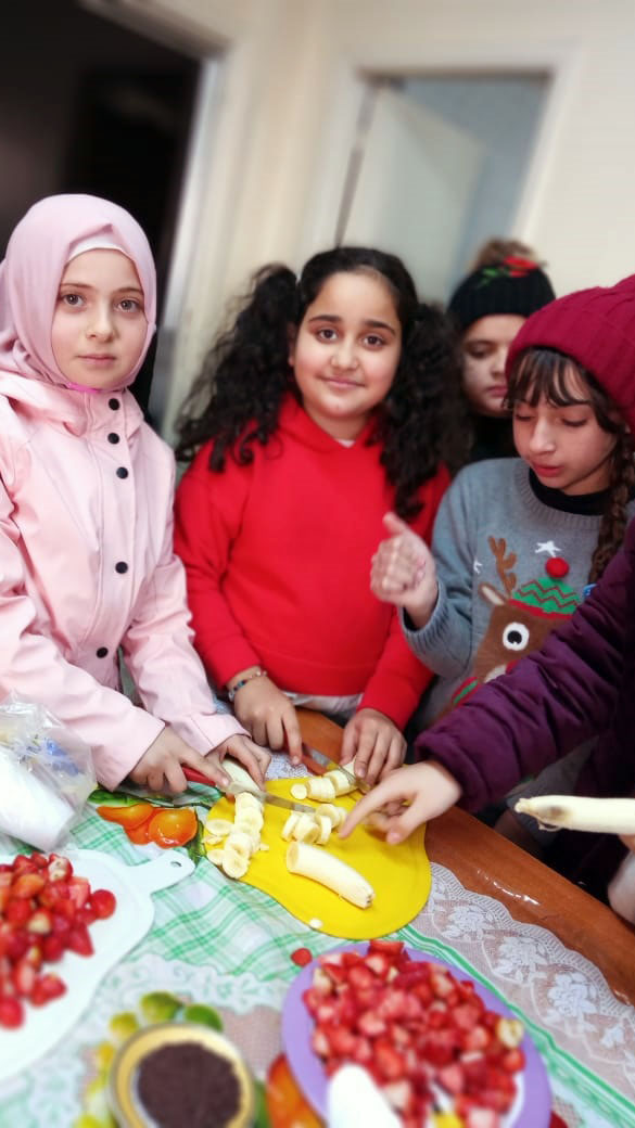- – تحضير سلطة فواكه تضمّنه شرح مجمل عن أهمية الغذاء الصحي.