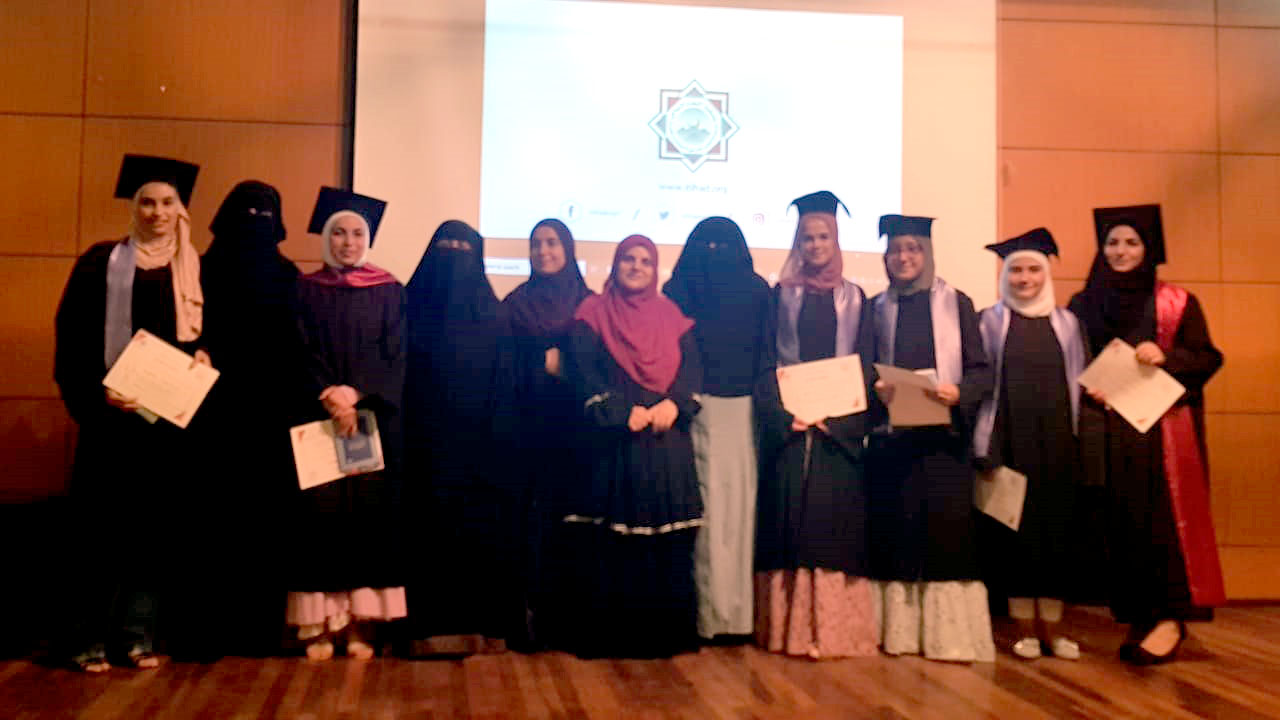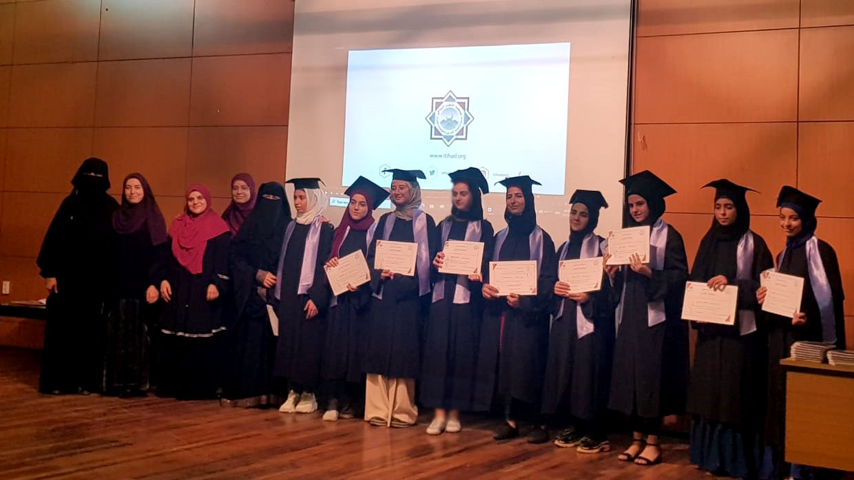 واختتم الحفل بتوزيع الشهادات والهدايا على الخرّيجات ثم التقاط الصور التذكارية الجماعية مع الأخوات المسؤولات في المنطقة.