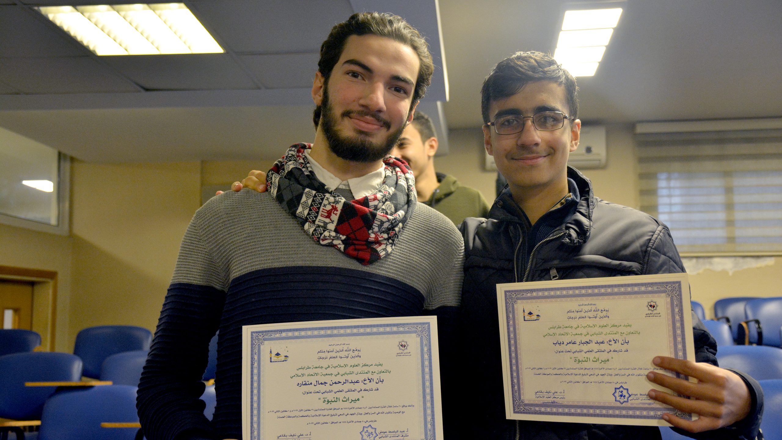 ثم تم توزيع الشهادات على المشاركين من قبل المنتدى الشبابي في جمعية الاتحاد الإسلامي ومركز العلوم الإسلامية التابع لجامعة طرابلس، وفي الختام جرى تبادل الدروع التذكارية.