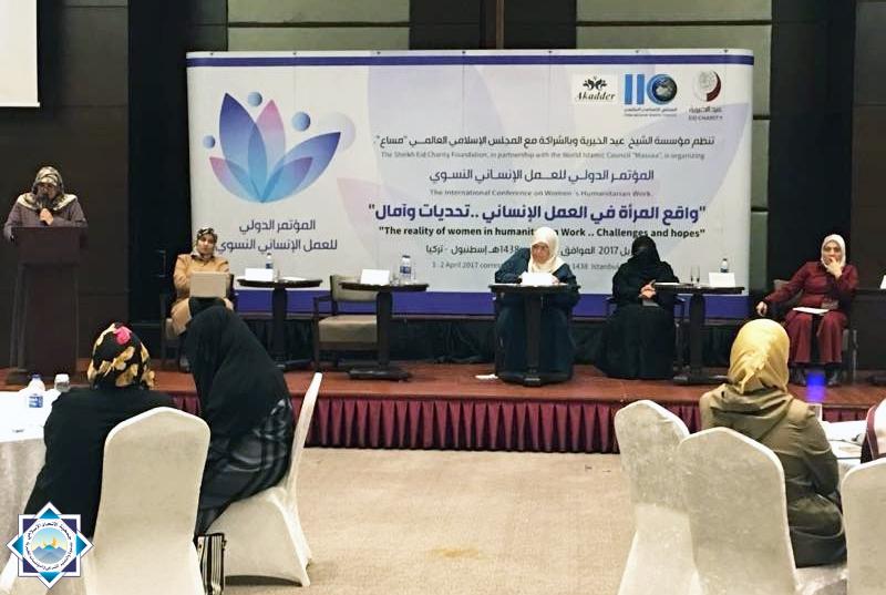 شاركت مسؤولة القسم النسائي في جمعية الاتحاد الإسلامي الأخت إيمان رمضان برفقة الأخت جمانة شملي (عضو لجنة العلاقات العامة)، في المؤتمر الدولي الأول حول “واقع المرأة في العمل الإنساني.. تحديات وآمال” والذي نظمته مؤسسة عيد الخيرية، ممثلة بمركز عيد النسائي، مع ممثلات (مسؤولات وعضوات) عن ما يزيد عن 60 مؤسسة خيرية مهتمة بالعمل الخيري حول العالم. وذلك يومَي السبت والأحد 1-2 نيسان 2017م.