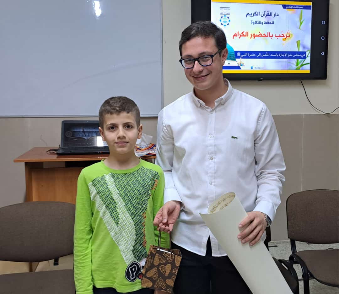 بعون الله تعالى وتوفيقه عُقد في دار القرآن مركز طرابلس مجلس ختم وتسليم للإجازة للطالب الشاب عبد الله الأشرفي. حيث أتمّ ختمة كاملة برواية حفص عن عاصم على فضيلة الشيخ الحافظ الجامع خالد يونس.