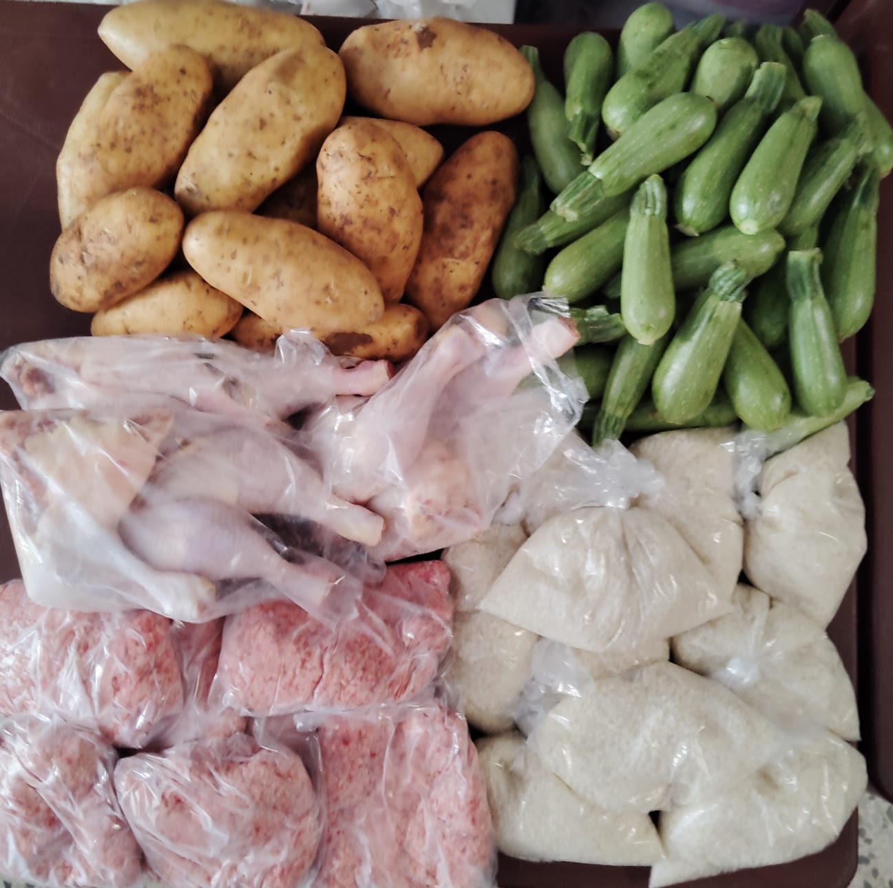 الأسبوع الخامس: لحمة مفرومة – لوبية – رز – لبن – طحين – بصل – عدس.