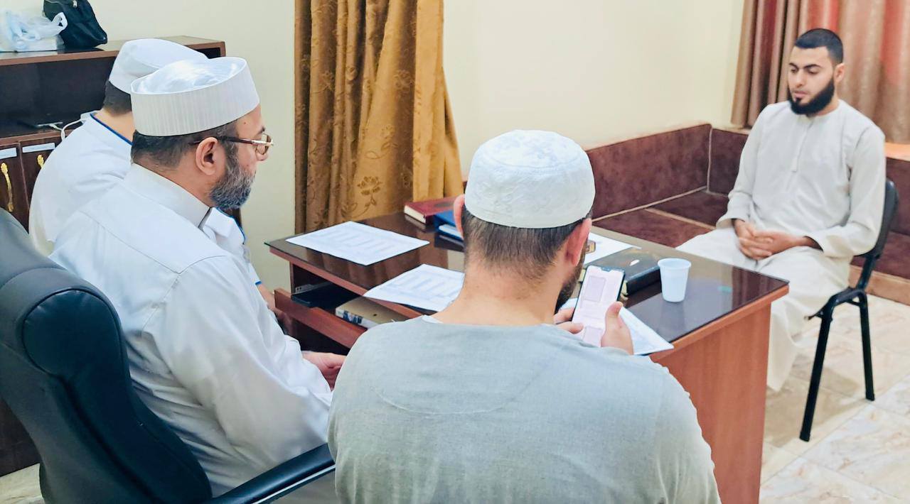 بعون الله وتوفيقه عقدت اللجنة العلمية في دار القرآن الكريم اختبارًا للأخ الشيخ أحمد خضر منصور برواية قالون وقراءتَي ابن كثير وأبي جعفر من طريق الشاطبية والدرّة، حيث قرأ ختمة كاملة على الشيخ الحافظ الجامع الدكتور محمود زعتري في دار القرآن البداوي – مركز الفضيلة.