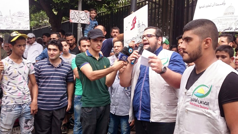 تخلّل الاعتصام كلمة للمنتدى الطلابي ألقاها أ. علي إبراهيم رئيس لجنة القدس والأقصى في جمعية الاتحاد الإسلامي.