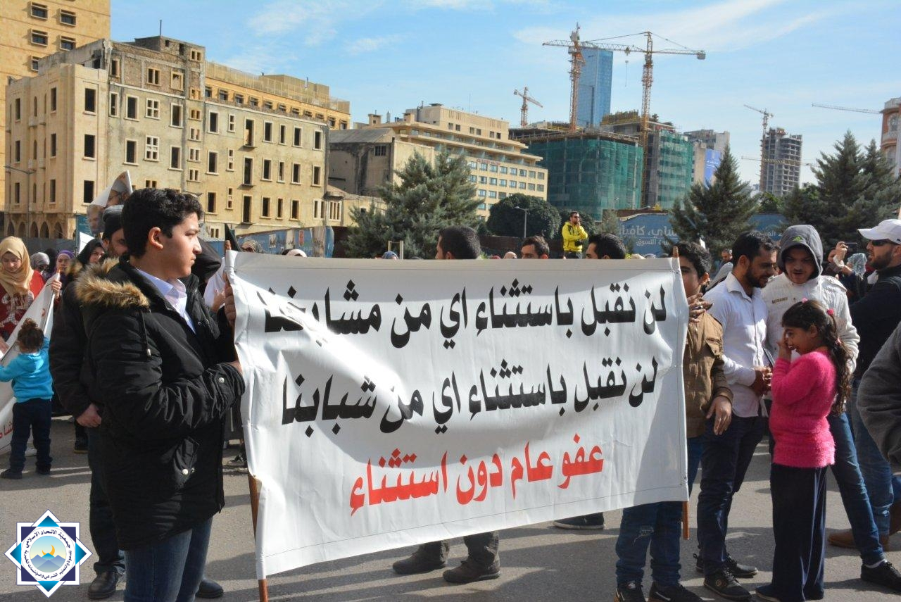 نظم أهالي الموقوفين الإسلاميين اعتصاماً أمام السراي الحكومي في بيروت للمطالبة بالعفو العام الشامل بلا استثناءات من أبنائهم حصراً -وأكثرهم مظلومون- في الوقت الذي يتسرب أنه سيشمل كل المجرمين.
