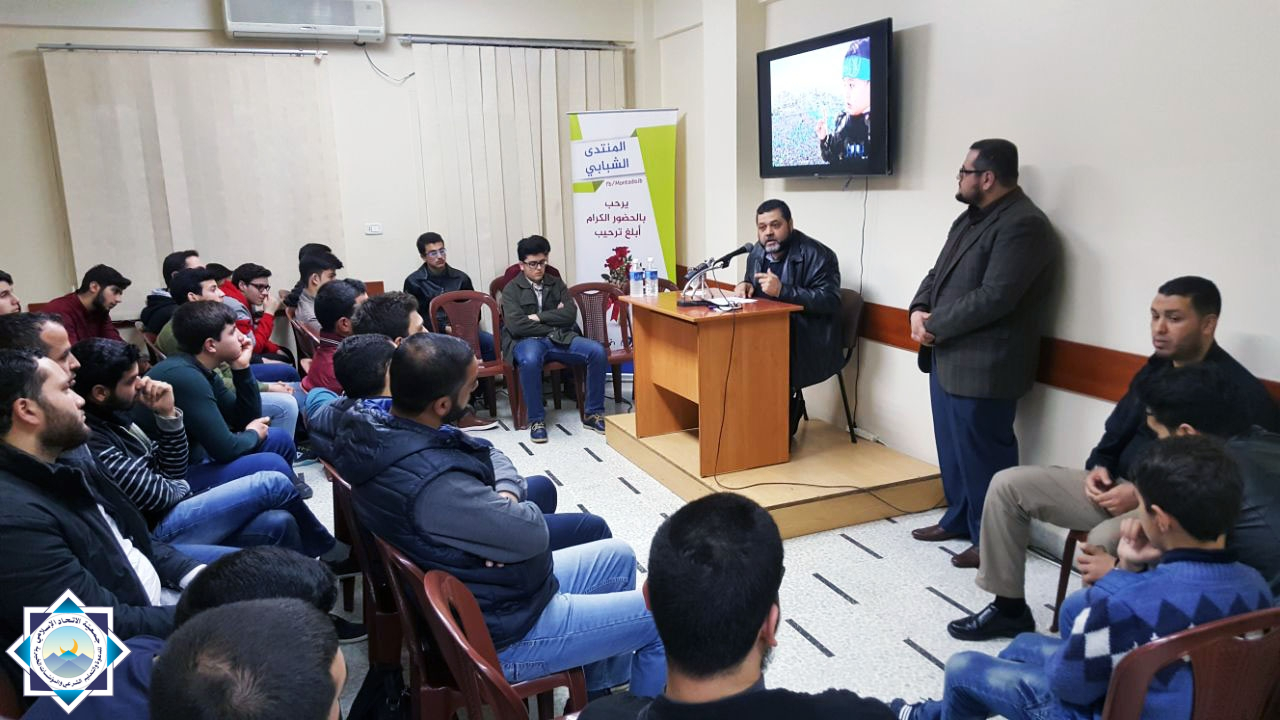 حاضَر في اللقاء الأول القيادي في حركة المقاومة الإسلامية حماس أ. أسامة حمدان حول عنوان: “فلسطين والقدس.. واقع وتحديات”. وقدم المحاضرة مسؤول لجنة الأقصى وفلسطين الأستاذ علي إبراهيم.